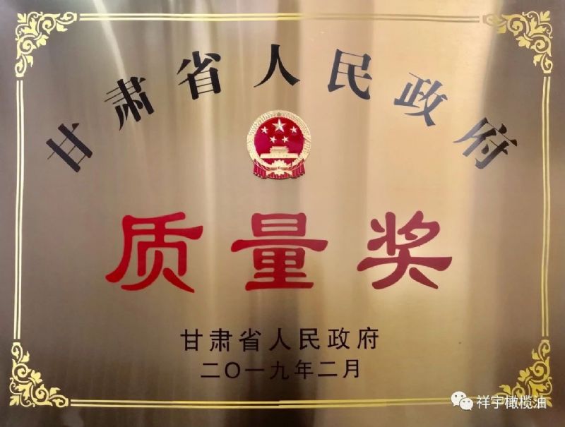 這一年,祥宇橄欖油榮獲甘肅省人民政府質(zhì)量獎